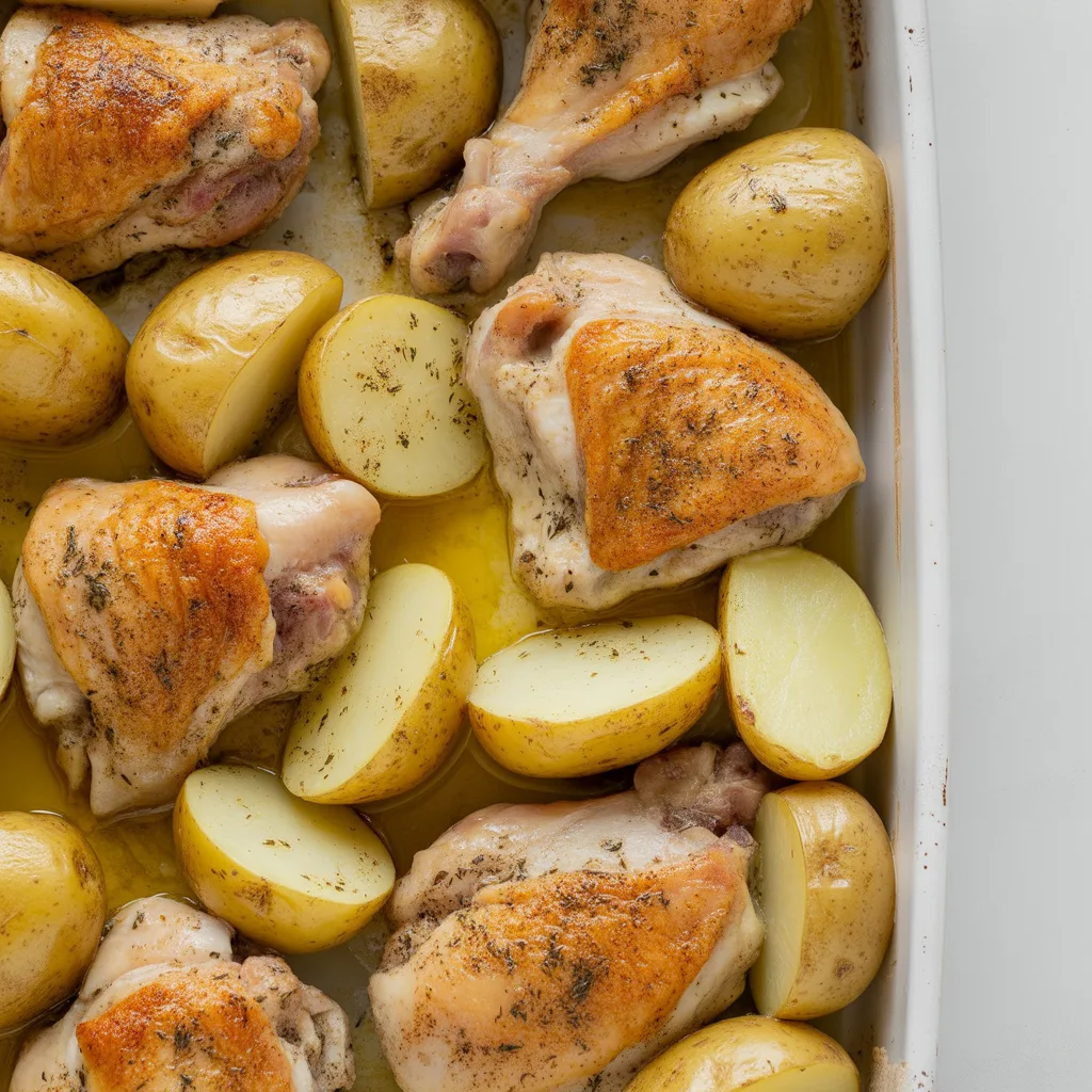 - Bake for 35-45 minutes, or until the potatoes are fork-tender and the chicken is cooked through (an internal thermometer should read 165°F). For extra crispiness, you can broil for the last 2-3 minutes, but watch it closely!
