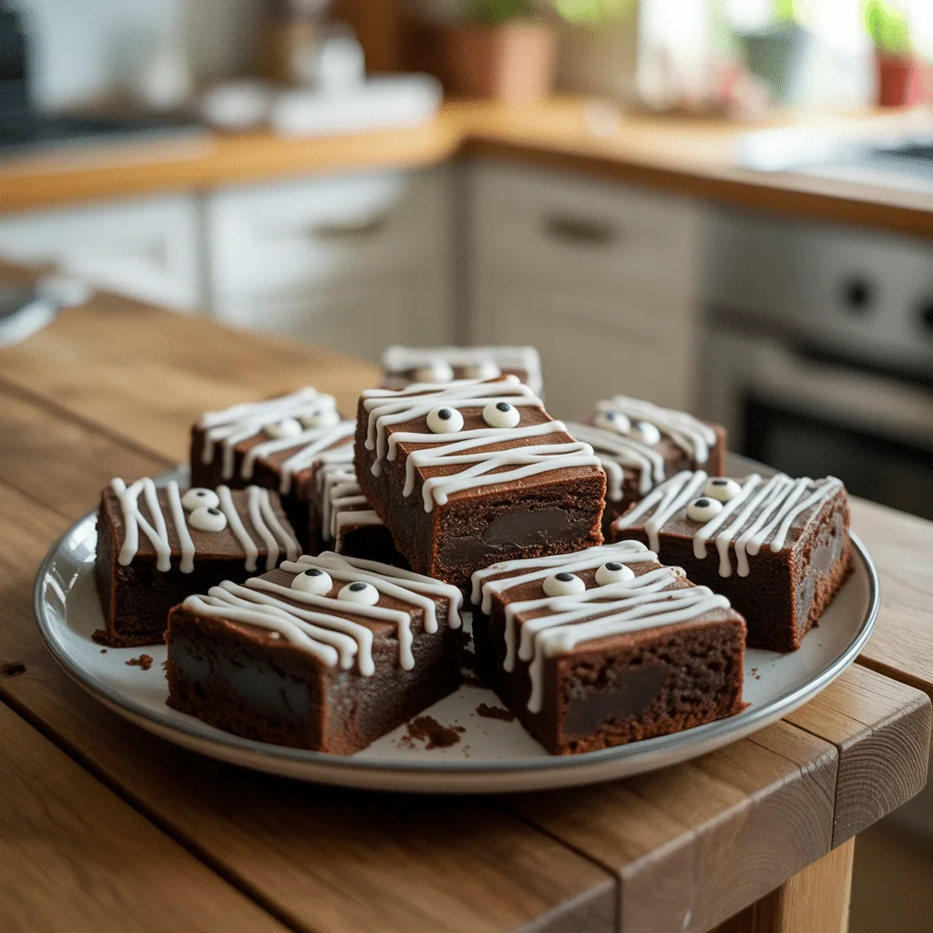 Spooky Mummy Brownies With Candy Eyes For Halloween Fun