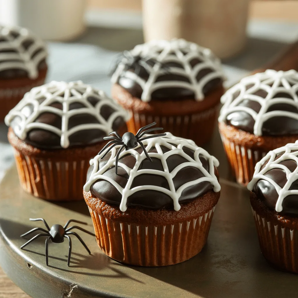 Creepy Spiderweb Cupcakes with Black Frosting for Halloween