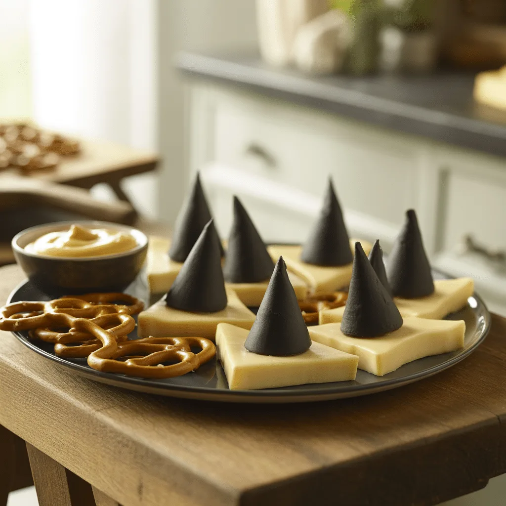 Witch Hat Cheese Bites with Pretzel Sticks Are a Spooky Hit