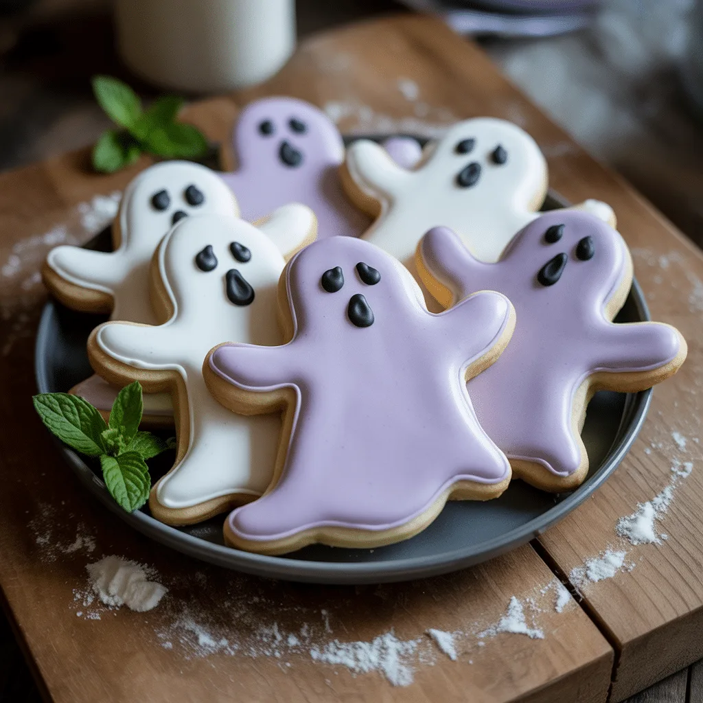 Ghost Sugar Cookies with Royal Icing for Halloween