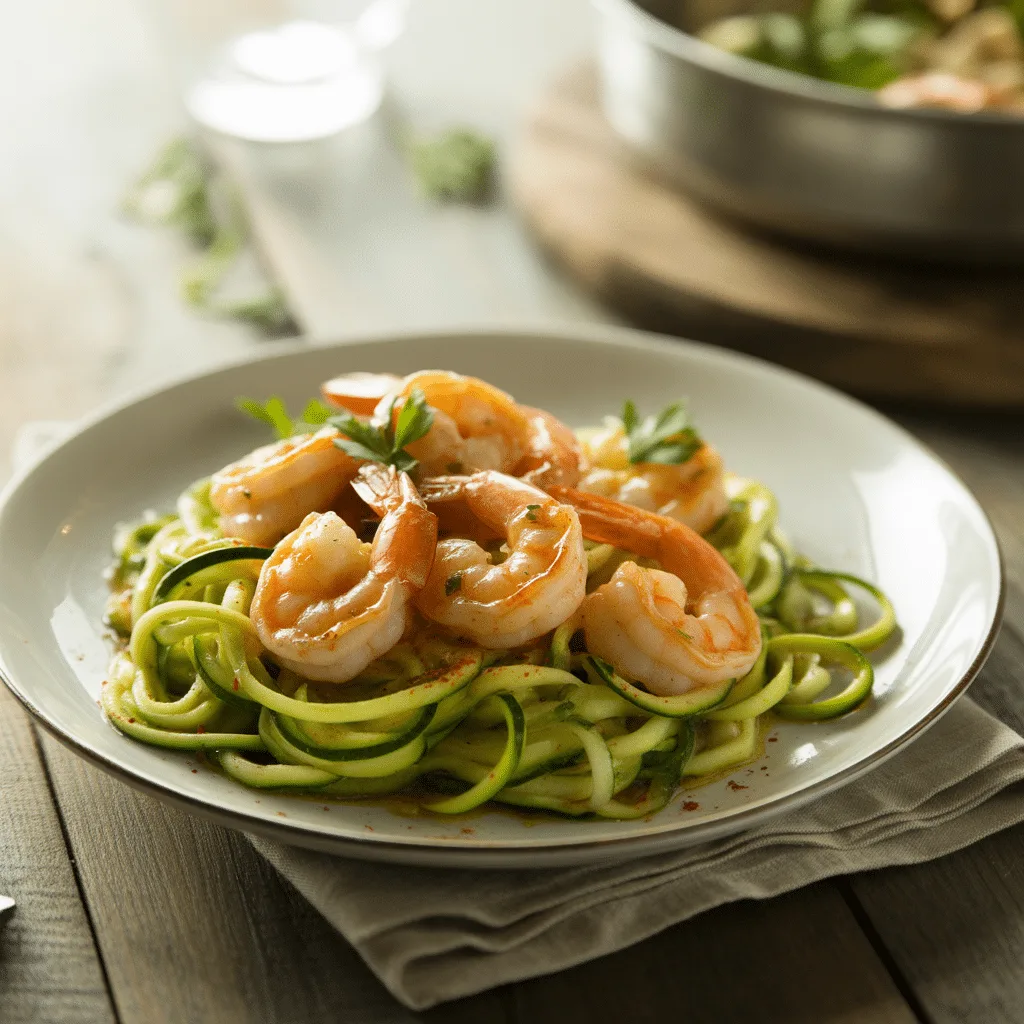 Skillet Garlic Butter Shrimp with Zucchini Noodles