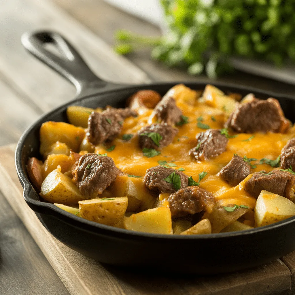 Easy Cheesy Meat & Potato One-Pan Skillet Dinner