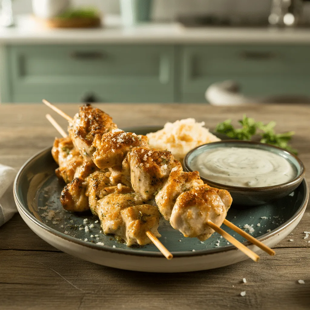 Garlic Parmesan Chicken Skewers with Ranch Marinade