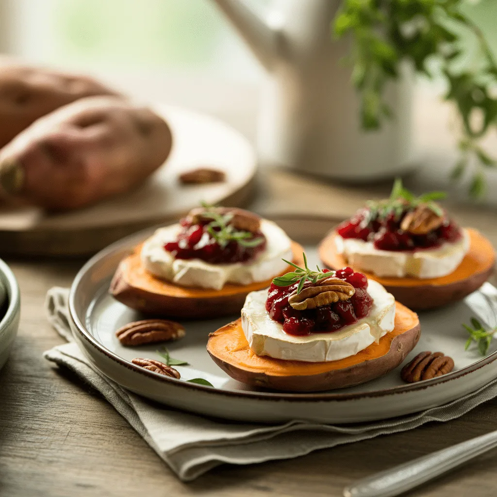 Sweet Potato Rounds with Brie, Cranberry & Pecans Recipe