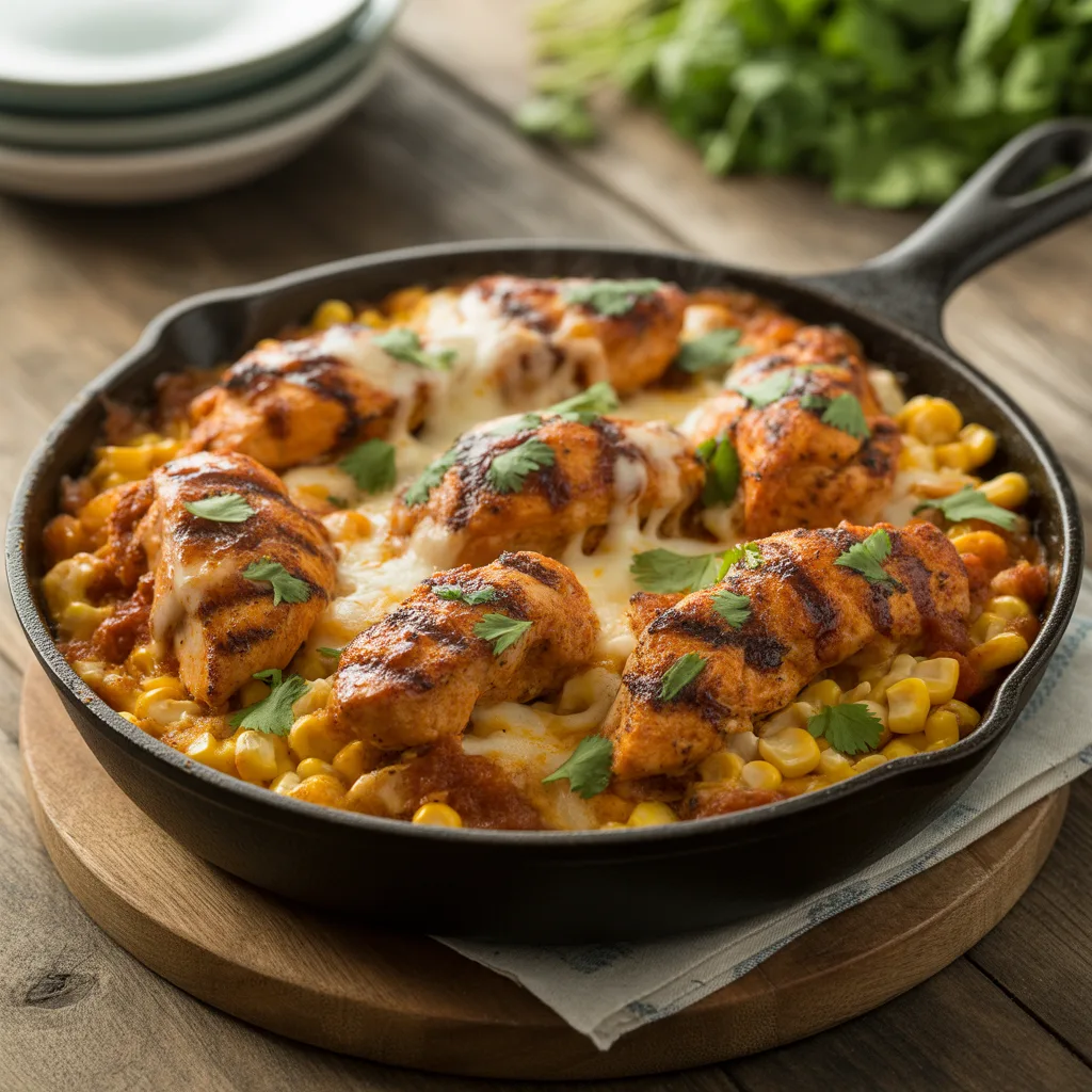 Is there anything better than a dinner that comes together in one pan, with minimal fuss and maximum flavor? I didnโt think so. This Cheesy BBQ Chicken and Corn Skillet is exactly the kind of meal I turn to when the day gets away from me but I still want to put something wholesome and delicious on the table. Itโs hearty, a little smoky, and just so satisfying. The whole family flocks to the kitchen when they smell it cooking. And really, who can blame them?