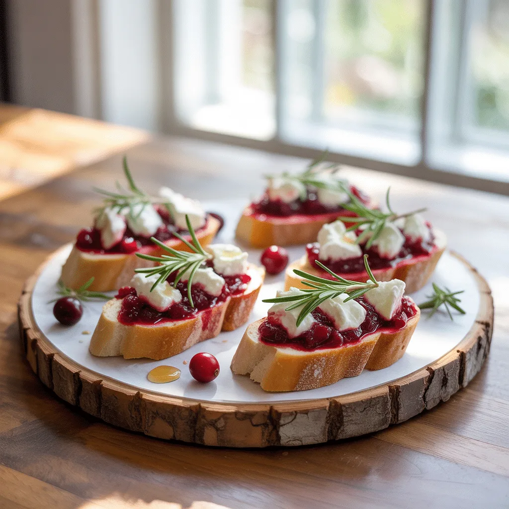 The best way to enjoy these is fresh, but you can absolutely prep ahead. Store the toasted bread slices, goat cheese spread, and cranberry topping separately in airtight containers in the fridge for up to 2 days. Assemble just before serving. I don’t recommend freezing them assembled, as the bread can get soggy. To reheat plain toasted slices, pop them in a 375ยฐF oven for 5 minutes to crisp back up.