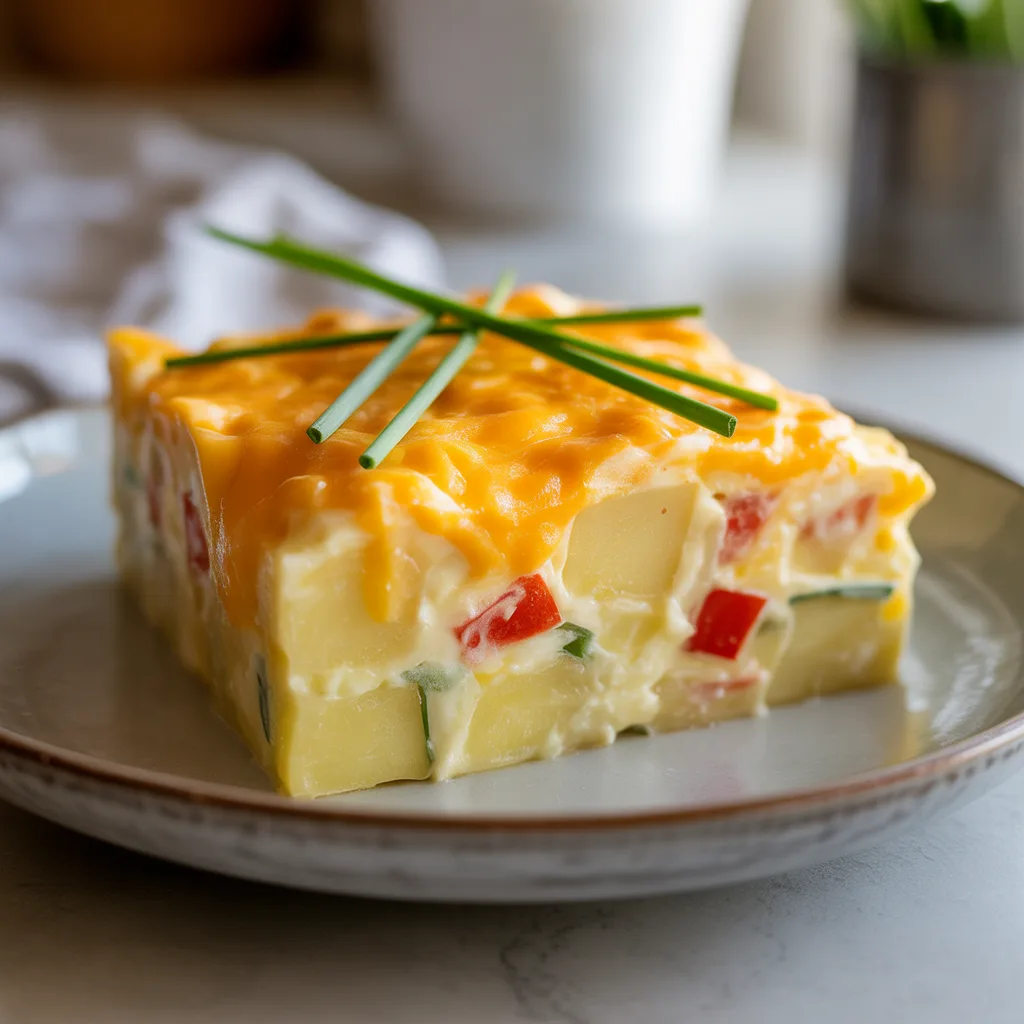 - Sprinkle the remaining ½ cup of cheese and the fresh chives over the top. Let it rest for 10 minutes before slicing and serving.