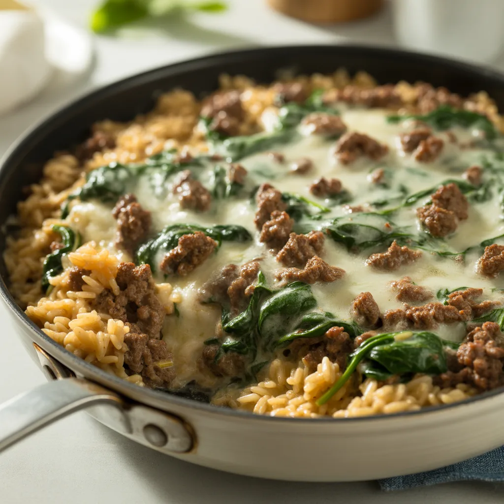 Is there anything better than a dinner that comes together in one pan with minimal fuss? This Creamy Spinach Beef Rice Skillet is my go-to answer on those nights when everyone is hungry, time is short, but takeout just isn’t going to cut it. It’s the kind of meal my grandma would have loved for its simplicity and heartiness. We’re talking perfectly seasoned ground beef, fluffy rice, and a creamy, spinach-packed sauce that feels downright luxurious. So much flavor from such a simple process.