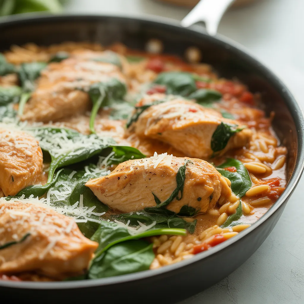 • Is this an easy healthy dinner? I’d say so! You’re getting lean protein from the chicken, whole grains from the orzo, and vitamins from the tomatoes and spinach. It’s a balanced meal that doesn’t skimp on flavor.