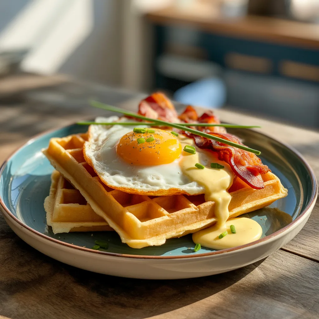 These waffles are a dream for aesthetic food photos and making your table look incredible. Serve them open-faced on a simple white or rustic wooden board. Let the beautiful waffle grooves be the star. For a pop of color, top with a perfectly fried egg with a runny yolk, some vibrant microgreens or chopped fresh chives, and a sprinkle of flaky sea salt. If you’re serving a few, lean them against each other on a platter for height and dimension. A little drizzle of hot sauce or a dollop of creamy Greek yogurt on the side also looks gorgeous and tastes amazing.