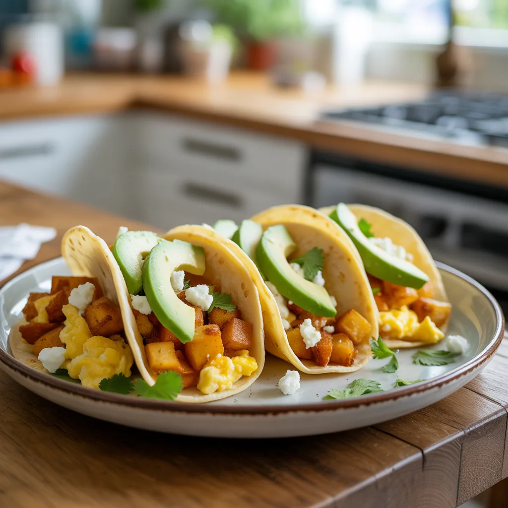 These tacos are a star on their own, but they truly shine as part of a bigger spread. For a proper brunch recipes lineup, pair them with a simple fruit salad or a refreshing smoothie for some healthy food ideas. If you’re leaning into a savory breakfast theme, a side of seasoned black beans or a dollop of fresh salsa is perfect. And for a real breakfast buffet moment, set up a topping bar with all the fixings so everyone can build their own. So good.