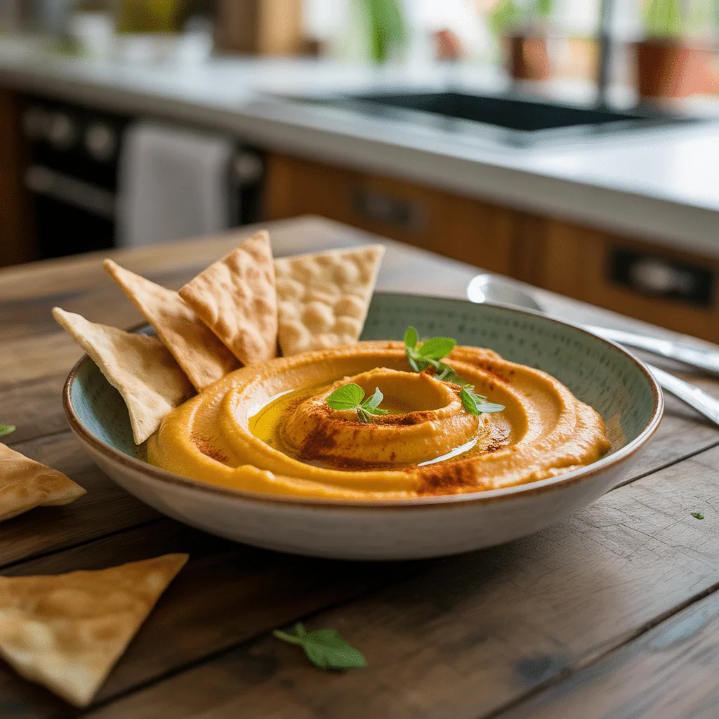 Pumpkin Hummus with Pita Chips for an Effortless Fall Appetizer