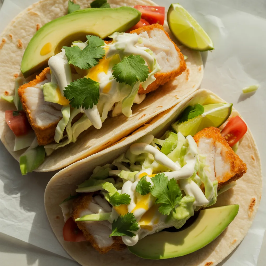 - To assemble, place a piece of crispy fish on each tortilla. Top with a generous spoonful of tangy slaw and any additional toppings you love. Serve immediately while everything is warm and crisp.
