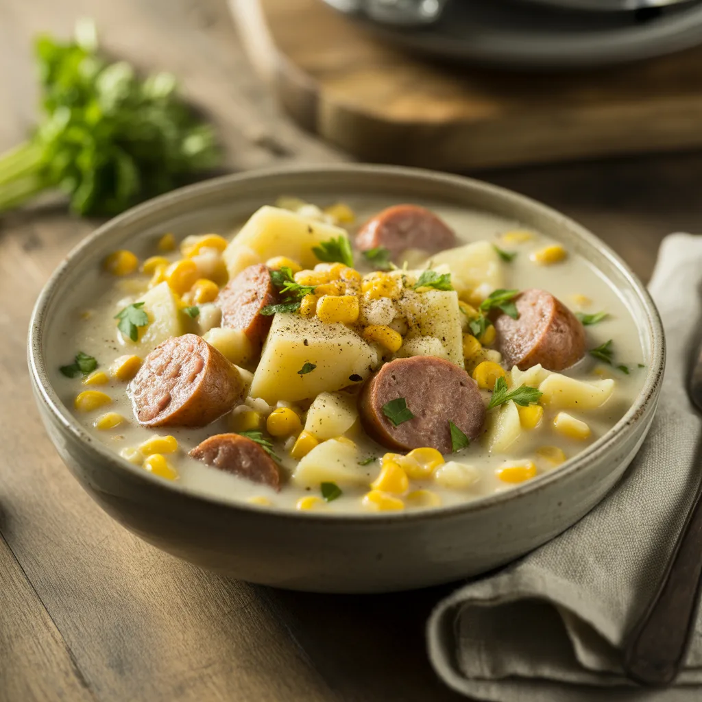 Is there anything more comforting than a big pot of chowder simmering on the stove? You know, the kind that makes the whole house smell incredible and promises a dinner thatโs both satisfying and simple. This Sausage, Corn & Potato Chowder is exactly that. Itโs the recipe I turn to after a long day, when I need something hearty and affordable that my whole family will happily eat. Itโs packed with flavor, comes together in one pot, and feels like a warm hug in a bowl. A truly soulful meal that just happens to be easy.