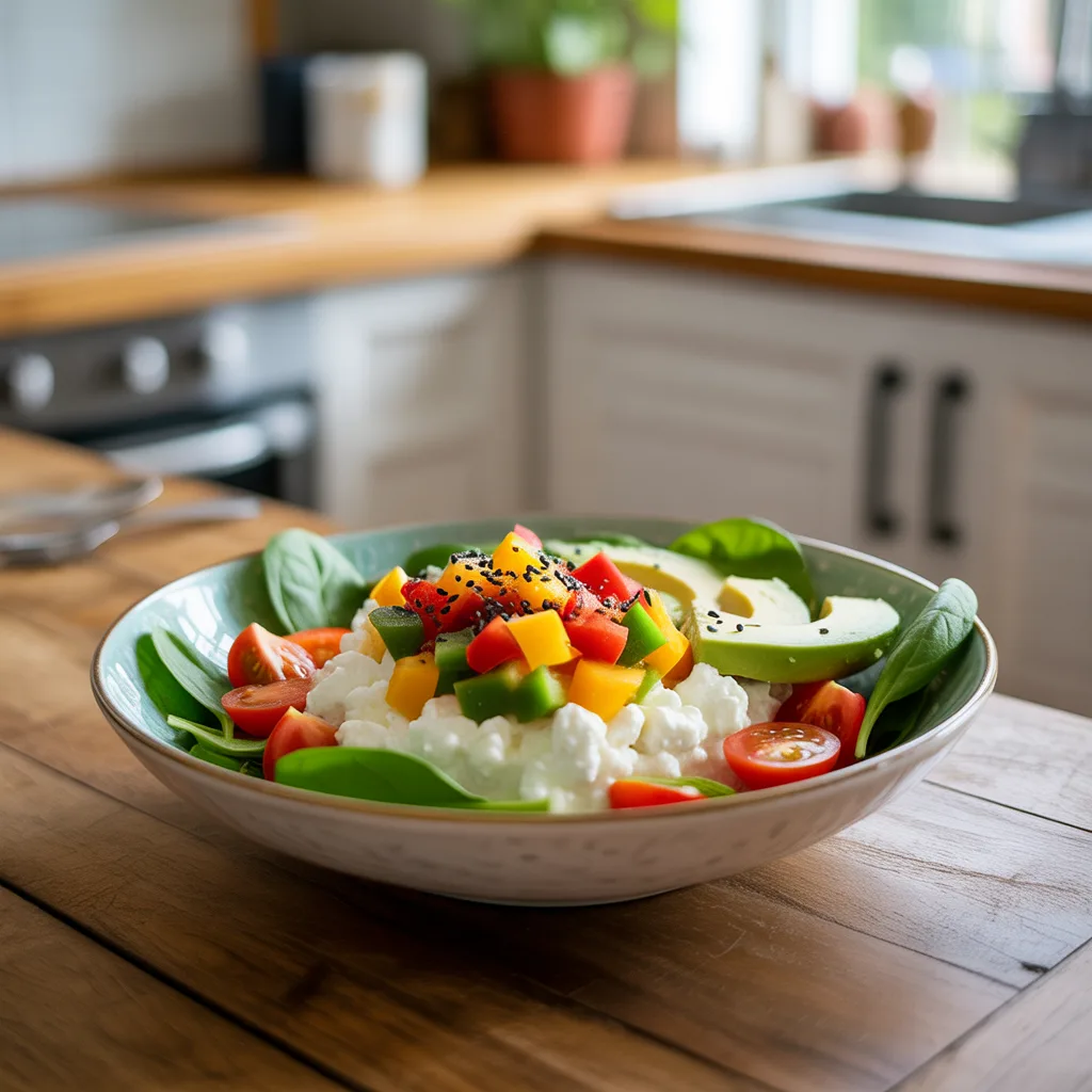 This is a make-and-eat-right-away situation for the best texture. However, you can prep the components ahead of time. Store chopped veggies and cottage cheese in separate airtight containers in the fridge for up to 3 days. Assemble your bowl fresh each morning. I do not recommend freezing this dish, as the cottage cheese and fresh vegetables will not thaw well at all.