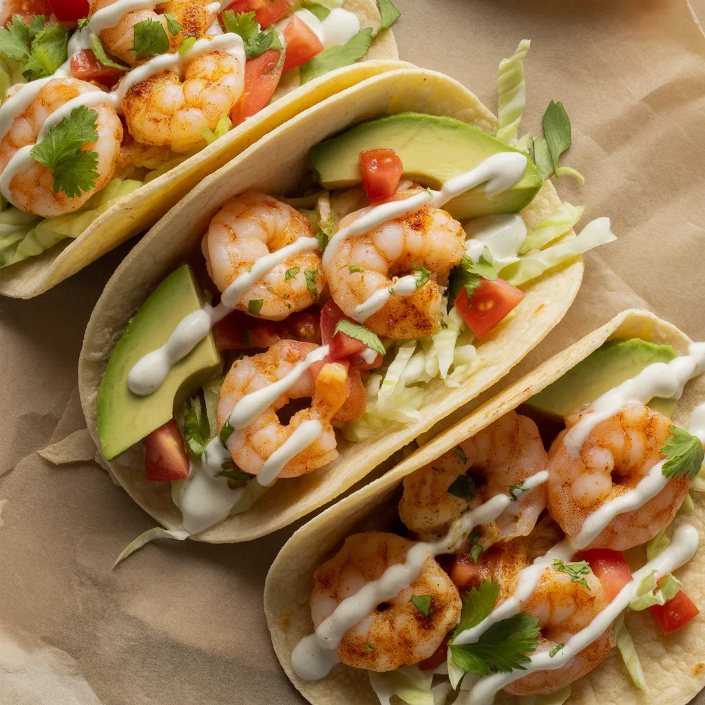 Leftovers? Store the cooked shrimp, toppings, and sauce separately in airtight containers in the fridge for up to 2 days. To reheat, gently warm the shrimp in a skillet over low heat for 1-2 minutes—microwaving can make them rubbery. The sauce stays fine cold. Unfortunately, these tacos don’t freeze well due to the fresh ingredients, but you can freeze the cooked shrimp alone for up to a month; thaw in the fridge before reheating.