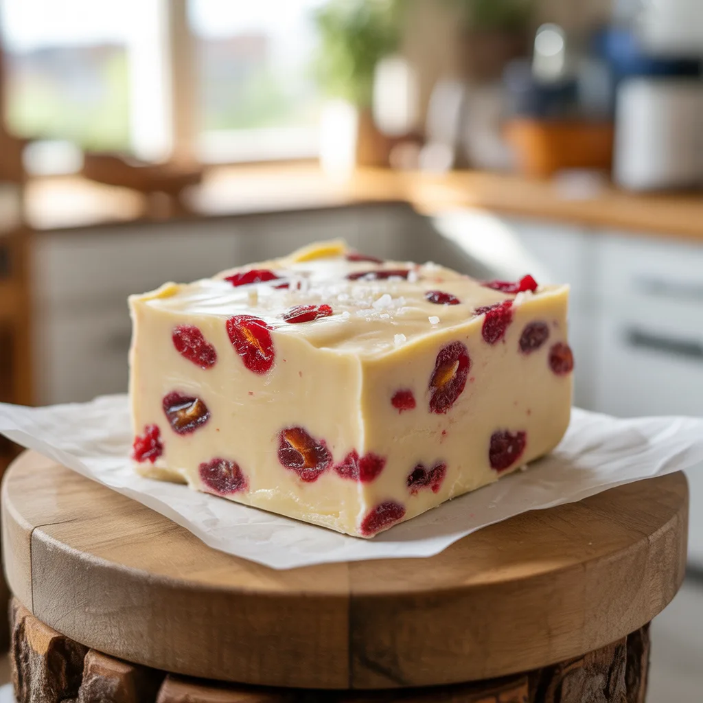 A: I donโt recommend it. Fresh cranberries have too much moisture, which will prevent the fudge from setting properly and could make it spoil faster. The chewy texture of the dried fruit is part of the appeal! - Q: Is this one of those easy Christmas treats I can make with kids?